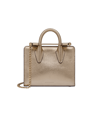 A playful take on the timeless original. Inspired by a vintage music folio discovered by our founders, the Nano Tote reimagines Strathberry’s iconic design in a compact size, perfect for day-to-evening essentials. Defined by its structured silhouette, it features the signature Music Bar closure that folds elegantly over the top handle. Handcrafted for versatility, it can be carried by hand, over the shoulder, or as a crossbody with the detachable chain strap.