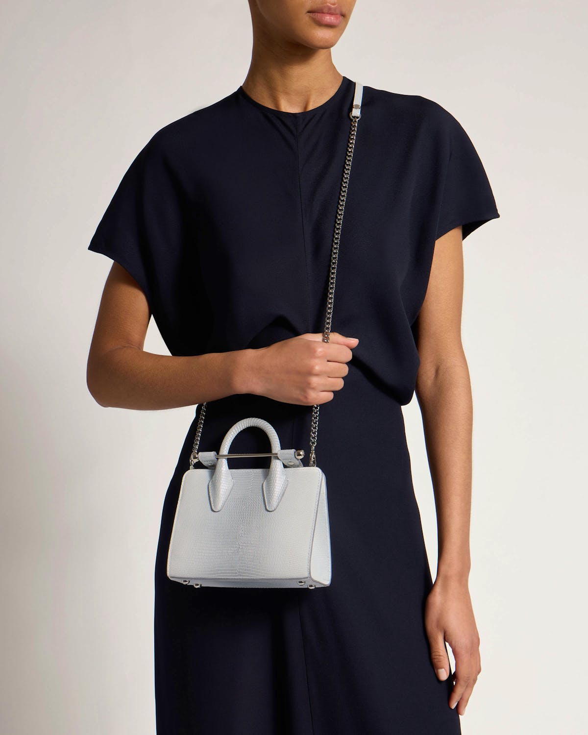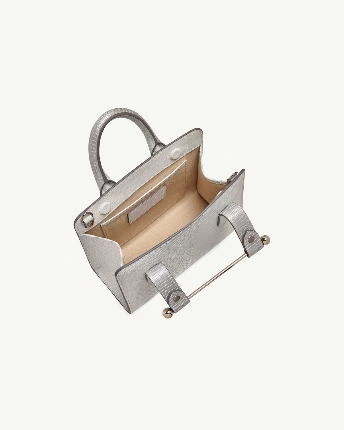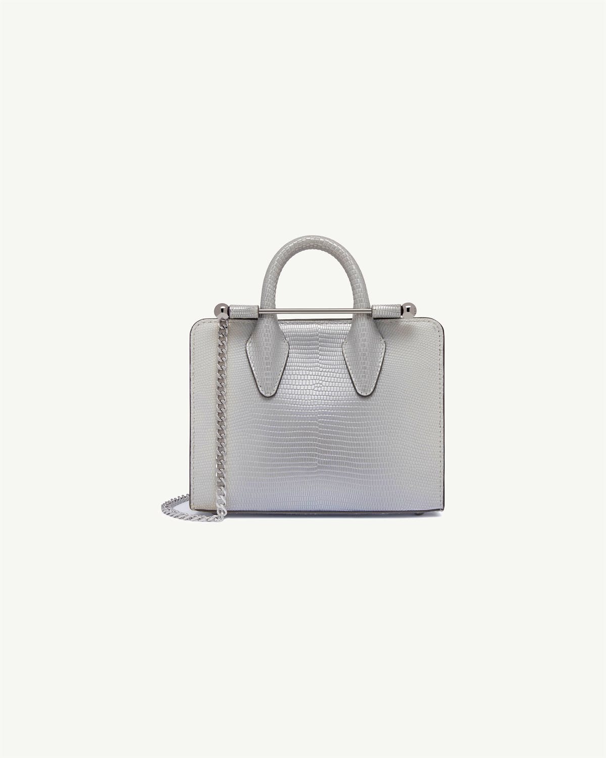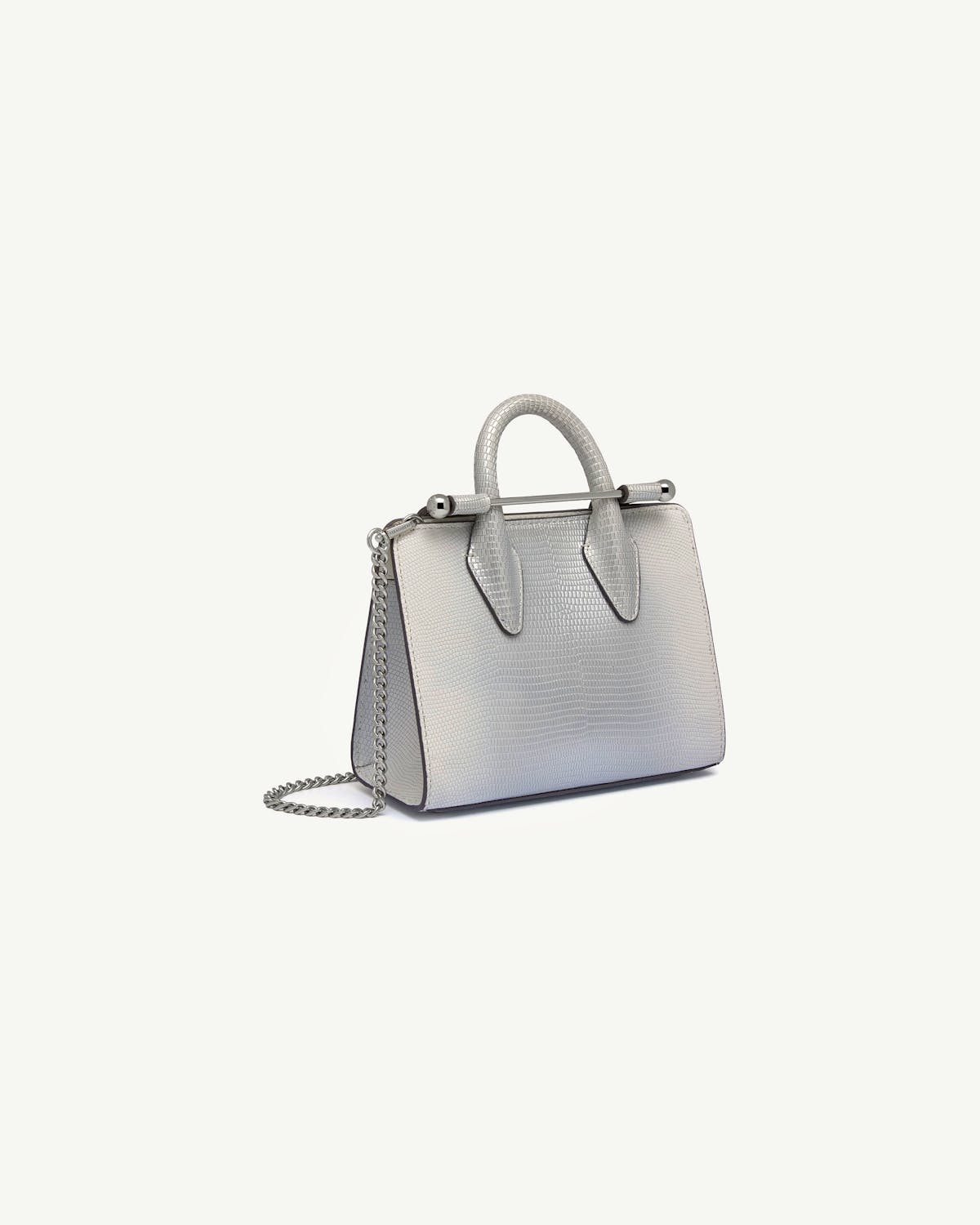A playful take on the timeless original. Inspired by a vintage music folio discovered by our founders, the Nano Tote reimagines Strathberry’s iconic design in a compact size, perfect for day-to-evening essentials. Defined by its structured silhouette, it features the signature Music Bar closure that folds elegantly over the top handle. Handcrafted for versatility, it can be carried by hand, over the shoulder, or as a crossbody with the detachable chain strap.
